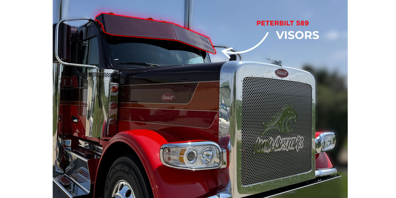 Quick view Iowa Customs SKU: IC1630 Peterbilt 589 Visors - Series 1 - Single Flair Log in for pricing